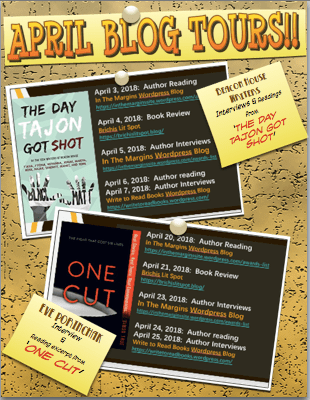 Posted on March 17, 2018March 17, 2018 Upcoming Blog Tours featuring the real live authors of our TOP 2 2018 Titles! THE DAY TAJON GOT SHOT’s Beacon House Writers and ONE CUT’s Eve Porinchak STAY TUNED TO THIS SITE Share this: Click to share on X (Opens in new window) X Click to share on Facebook (Opens in new window) Facebook Like Loading... Related