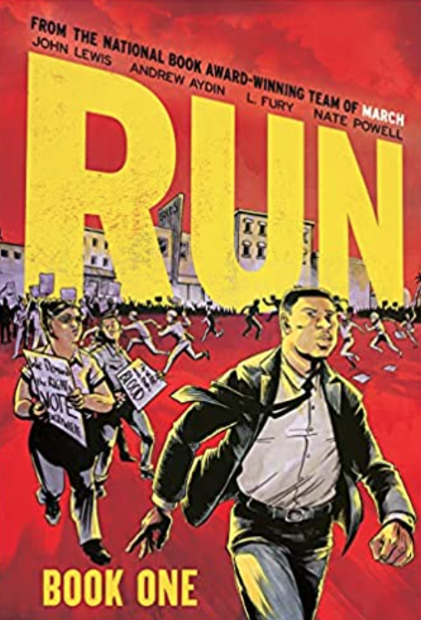 - Lewis, John, Andrew Aydin, L. Fury, and Nate Powell. Run: Book One. August 2021. Abrams. $24.99. Hardback. 160 pages. 9781419730696. Young Adult. In this follow-up series to Representative John Lewis’s life story, Run, Book One looks at the dramatic transitions and struggles Representative Lewis went through after participating in the March on Selma and the signing of the 1965 Voting Rights Act during the Civil Rights Movement. Many of the lessons shared from the representative’s life align with today’s struggles. This is a graphic biography.
